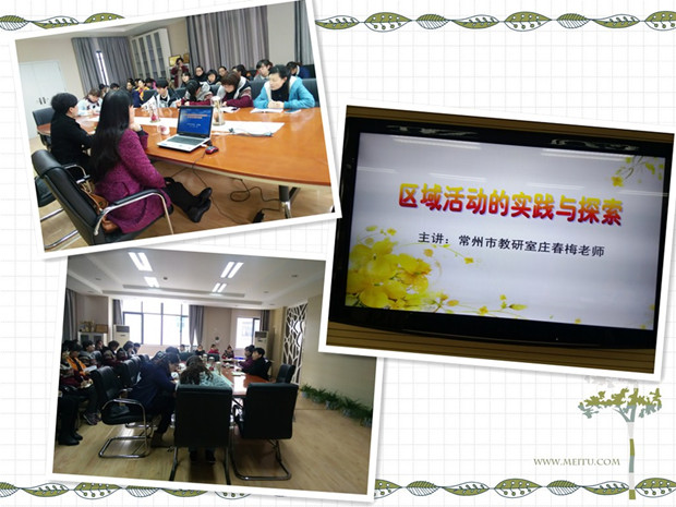 3月17日中午,常州市教科院庄春梅老师莅临丽华第三幼儿园,进行业务指导。庄老师结合当前学学前教育的新形势,针对江苏省开展的课程游戏化作出了高位引领,特别是在“例谈主题课程背景下的游戏和区域活动组织策略”方面,庄老师深入浅出、例举了生动鲜活的案例,帮助教师从幼儿学习生态透视游戏精神入手,了解儿童学习取向,剖析游戏性质与学习品质的关系,畅谈主题背景下区域活动创设的思路,游戏的观察要点等等,短短两个小时的传授与交流,让在座的老师们受益匪浅,同时庄老师还参观了丽华第三幼儿园的园所环境和班级区域,为教师们的区域实践与研究指明了方向。