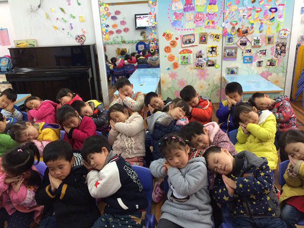 午睡前,教师实地指导幼儿运用正确的睡觉姿势,让幼儿从小养成良好的睡眠习惯和作息习惯。除此之外,教师还利用家教园地健康保健栏目向家长宣传睡眠保健知识和有助睡眠的多种方法,指导家长重视养成幼儿良好的睡眠习惯,提高幼儿的睡眠质量。