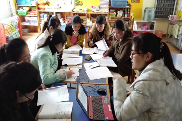 在这次的培训活动中,一线老师们积极回答问题,并仔细阅读教材。通过运用数学活动的教具、学具进行实践操作,来思考幼儿学习时会出现的各种问题。黄老师对教师模拟活动过程及效果给予了点评,并以这一活动为载体,围绕数学活动重难点确立、教学具投放、幼儿活动常规建立、教师评价体系的规范等问题展开了互动式讨论。通过讨论与发言,教师们的教学智慧在会场上进行碰撞,相互切磋,现场气氛热烈,而且将培训活动推向了高潮。