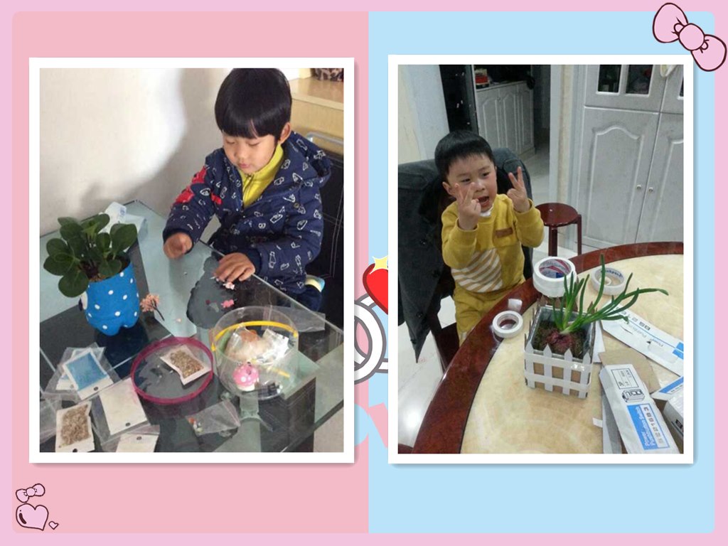 春分时节,雨水明显增多,气温相对稳定,是适合播种的时节。而今年的春分节气恰巧是星期六,虽说不能在幼儿园进行种植活动,但这并不影响小朋友们的种植热情,他们在家里和自己的爸爸妈妈一起做起了亲子DIY种植活动。