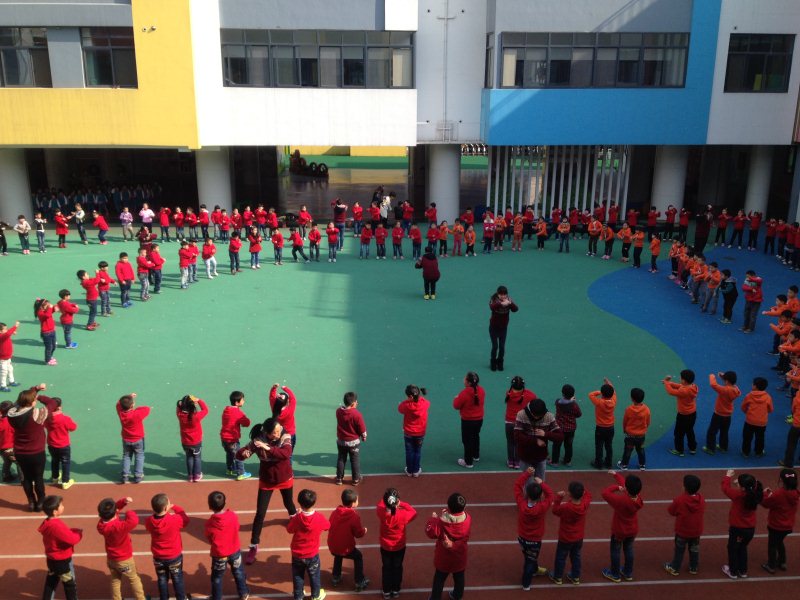 孩子们场上有序地站好队列,身着整齐的服装,精神饱满,伴随着欢快的音乐,活力十足的运动着,向全园小朋友和老师们展示最佳的精神面貌。走、跑、跳及单脚立等动作统一、神气。别看才练习了还不到一个月的时间,他们也一样表演得很整齐、很出色!