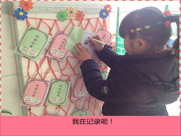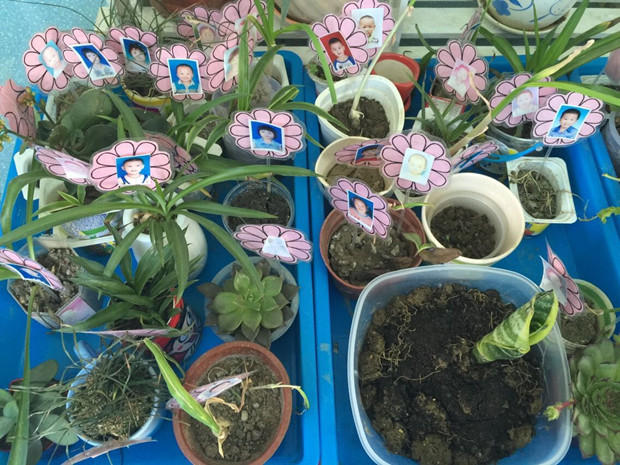孩子们利用易拉罐、方便面盒、大饮料瓶做花盆,在家长的帮助下,种上自己喜欢的种子和花草,并在花盆上写上自己的名字及植物名称,感受到了种植的快乐。老师们在种植区里引导幼儿观察植物的生长过程,指导幼儿经常给植物浇水、关心、照顾它们,并与幼儿一起细心观察记录种子发芽、生长的过程。以生动的形式和具体的行动关注植物生长变化的每一个过程,了解植物的生长规律,帮助孩子积累关于植物生长的初步经验。