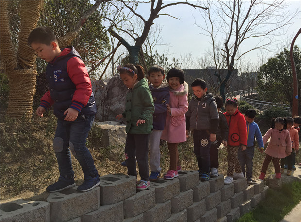 3月是雕幼一年一度的踏青节,今年结合我园开展的生态课题,围绕“生态徒步游”主题,教师们通过前期踩点,充分利用凤凰公园的现有环境资源,通过整合,以生态的理念设计了一系列孩子们喜欢的体育游戏:如借助围墙,开展“小小蜘蛛侠”游戏,发展孩子的攀越能力;利用林荫大道旁的高低小路,开展“平衡达人”游戏,培养孩子的平衡能力;巧借断桥栏杆布置“穿越生死电网”,锻炼孩子的钻爬能力……