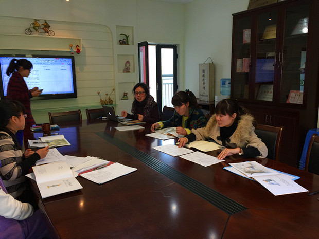 活动中,大家首先对前两个主题活动的开展情况进行了反思,对个别课程进行了再微调。然后对下一个主题《我找到了春天》的实施进行全面审议。