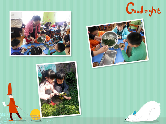 老师带领孩子们来到幼儿园的菜地里,他们看到满地的野菜雀跃不已,迫不及待的拿起小剪刀,有的挖,有的寻,有的装,在这过程中孩子们不仅认识了我们这儿常见马兰、荠菜、蒲公英等,更重要的是让孩子感受到了春天勃勃的生机。最后老师们请厨房里的阿姨将孩子们的劳动成果做成了美味的菜肴,让孩子们品尝野菜,享用自己的劳动成果,体验劳动的乐趣。