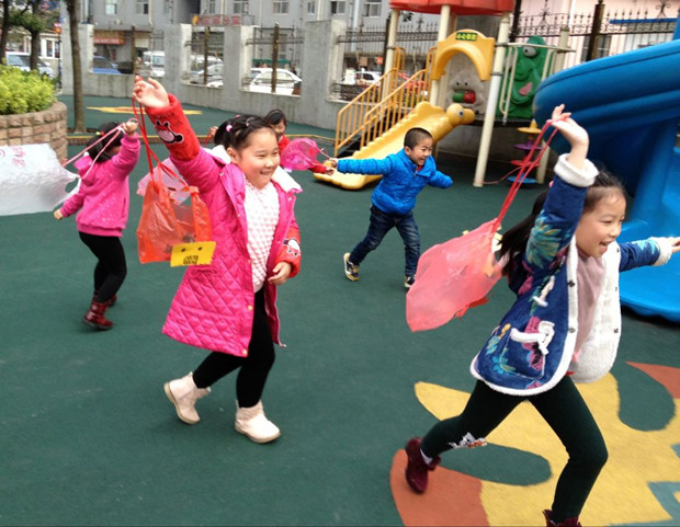 孩子们在老师的指导下,利用废旧塑料袋装饰成各种各样的风筝,感受变废为宝的快乐,并在园内兴高采烈地放飞。看着自己的风筝在蓝天上愉快地飞舞,孩子们都掩饰不住内心的喜悦,歌声、笑声一片,大家情不自禁地欢呼雀跃,这些风筝承载着孩子的梦想、和老师的殷切期望。