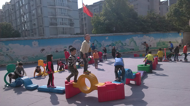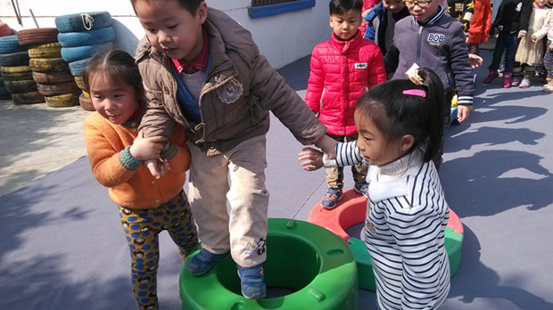 《纲要》中指出“儿童是活动的主体,教师必须了解儿童的内在需要,不同的兴趣爱好和潜在发展可能性,给予儿童自我发展的机会”,又指出“儿童通过与环境的相互作用生成开展活动”。近日丽二幼大班组的孩子们利用户外体育器材和晨间体育器材自主搭建大型的体育活动,并给它取名为“开心乐园”。