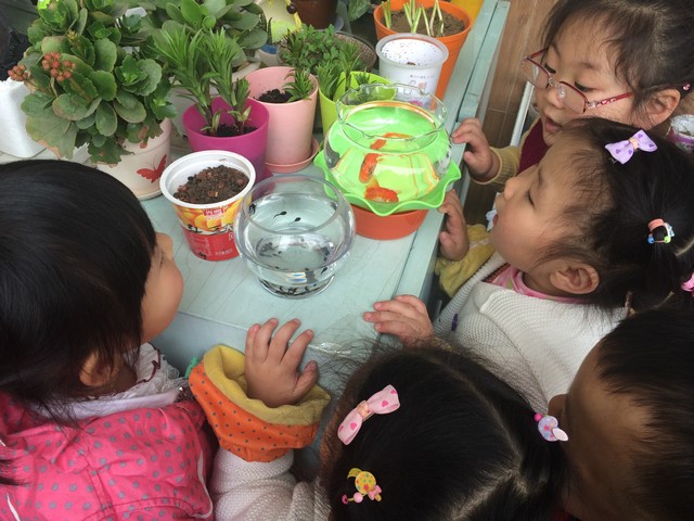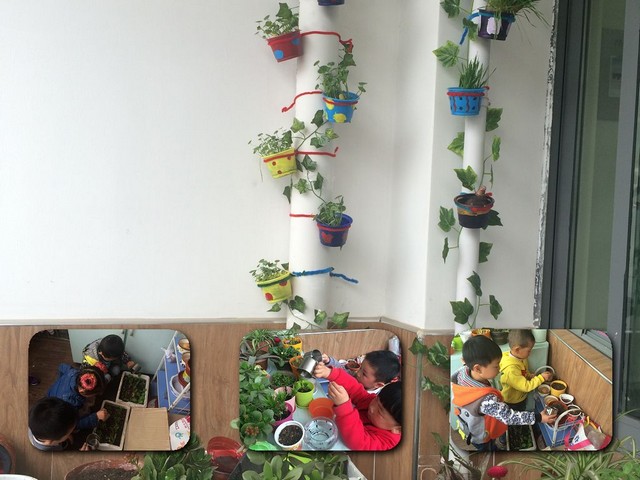 小朋友从家里带来的一棵棵植物,通过每天亲自动手照顾,让小朋友既增长见识,也培养起爱心和责任感。别看每一个都是家里的小宝贝,他们照顾起这些花草来可用心了,每天照顾花草的时候也是他们非常开心的时候。