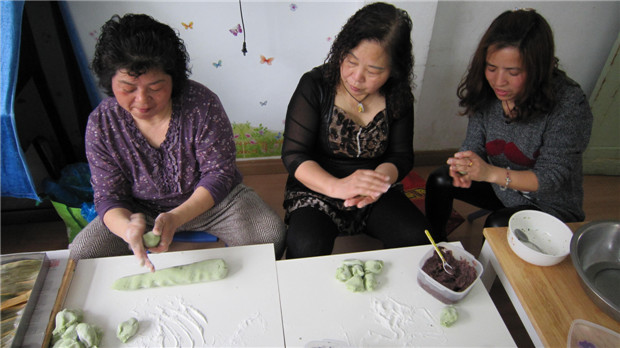 活动过程分为“知清明”、“做青团”、“品青团”、“送青团”四个环节进行。首先通过视频资料让幼儿了解清明节的来历和习俗,我国的清明节习俗之一是摘绵菜做青团,接下来家长就带领幼儿一起动手制作青团。幼儿对于制作青团兴趣高涨,都有模有样的搓起面团来。做好的青团绿绿的,蒸好的青团香香的,孩子的小脸乐呵呵的!最后在孩子们的笑脸中把美味的青团送给其他老师小朋友一起分享。