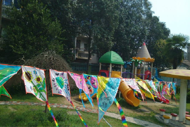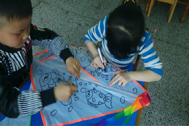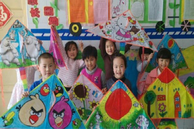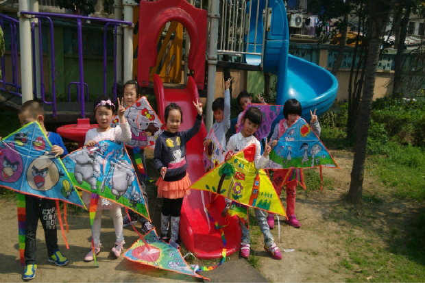 风筝以其独特的文化渊源、艺术气息、游戏功能吸引着幼儿,结合我园的创意美术特色,老师们和小朋友一起动手制作风筝,并在风筝上画出孩子们心目中最美的画,孩子们用心制作的风筝多么美丽:可爱的小公主、飞舞的蝴蝶、鲜艳的花朵等栩栩如生。
