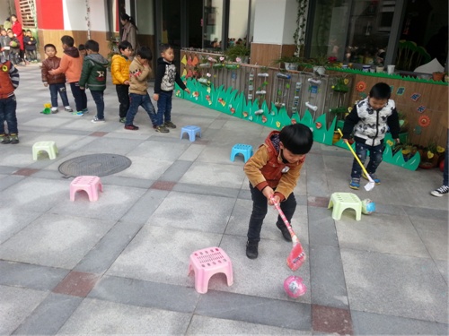 快乐的一天就这样在运动中开始了,孩子们时而绕、时而跳、时而打棒球,玩得不亦乐乎,教师们对活动进行科学合理的组织与调控,使孩子们得到了积极有效的锻炼。这种开放式的锻炼,让孩子们不再局限在规定的一方小天地,他们可以玩到更多的器具,真正做晨间锻炼的主人。幼儿园的早晨呈现出健康、活泼、向上的氛围,快乐在操场上飞扬!