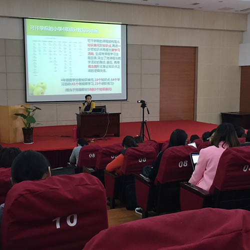 培训中,顾老师详细介绍了微课的含义,播放了一些富有特色的微课视频,引起了大家的浓厚兴趣。随后顾老师还讲解了微课视频的设计,基于教学设计思想,PPT尽量做到图文并茂、美观大方等,接着具体介绍了微课的制作方法及技巧,如何用Camtasia-Studio软件将PPT录制成视频,如何在视频中制作片头……接着又和在场的老师们进行一个有问必答的互动,整场培训充满了生动诙谐的叙述和妙趣横生的点评,使得会场气氛十分活跃,培训效果很好。