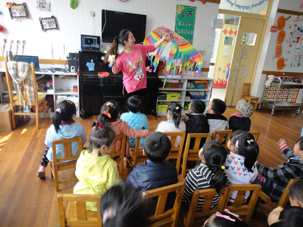 活动中主要讲五个部分:小朋友介绍自己的风筝、了解风筝的起源、讲述风筝的结构、安全教育、童心齐飞。