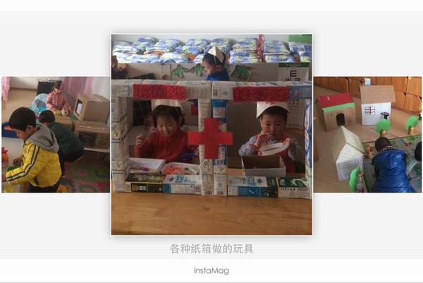 2015年地球日活动主题为“珍惜地球资源转变发展方式——提高资源利用效益”。针对保护地球这样深刻的命题,我们新城逸境幼儿园的老师在日常生活中经常提醒孩子要物尽其用,崇尚节约,鼓励家长和孩子们共同动手,变废为宝,结合我园纸艺的特色,将一个个废旧的纸箱、纸盒、旧报纸等变成了孩子们的玩具,并且鼓励孩子尽量不买新衣服,和妈妈一起进行旧物改造,节约地球上的资源。