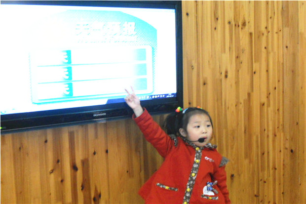 为了增加活动的趣味性,吸引更多的孩子参加播报活动,我们尝试用角色表演的方式让孩子们播报天气,让孩子扮演真正的播报员进行天气播报。教师也结合气象播报的内容,让孩子们尝试用轮流播报、独立播报和合作播报的方式进行,孩子们都争着要当小小气象播报员。