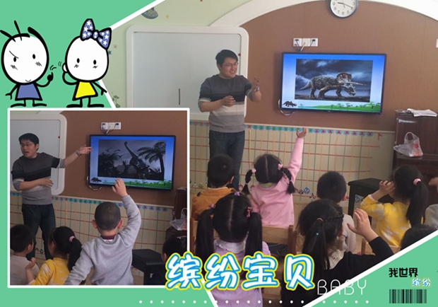 4月23日,陈梓源爸爸来到大二班教室,带领孩子们开展了一堂生动有趣的科学活动——《消失的恐龙》。活动中,陈梓源爸爸利用直观的多媒体课件引导孩子们认识了各种不同的恐龙,了解了它们的特征。同时,他还准备了视频材料,真实的为大家展现了恐龙灭绝以及恐龙化石的还原过程。陈梓源爸爸是红梅实验小学的老师,因此给孩子们上课对他来说游刃有余,课前他经过了充分的准备,将活动组织得生动活泼,孩子们非常喜欢。