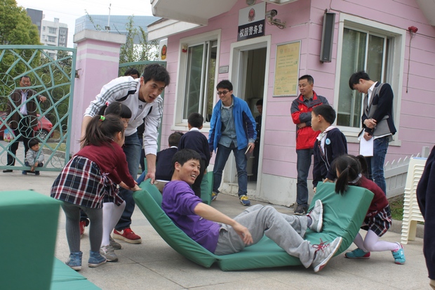 林浩老师依托自己体育专业特长,在指定的幼儿园活动场地利用提供的游戏器材,设计符合孩子学习方式和年龄特点的游戏中,他所设计的游戏玩法得到大家一致认可,并被推选担任第八组执教老师,向现场的男教师、幼教专家们展示大班体育游戏《垫儿乐》,游戏不仅得到同仁的掌声,更听到孩子说:“这个游戏真好玩,我们还想玩。”在游戏活动点评中获得无锡市滨湖区学前教育研究中心祝晓燕主任的高度评价。