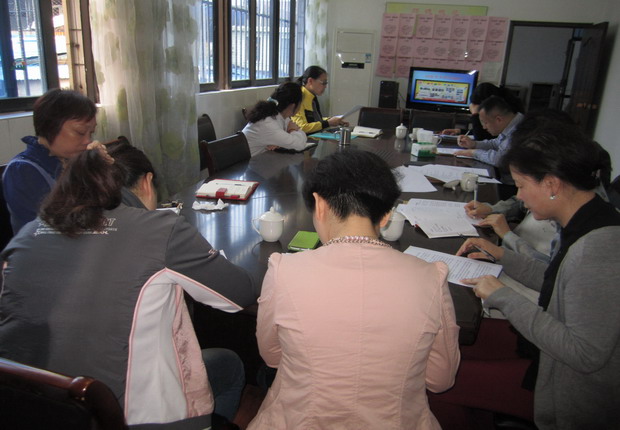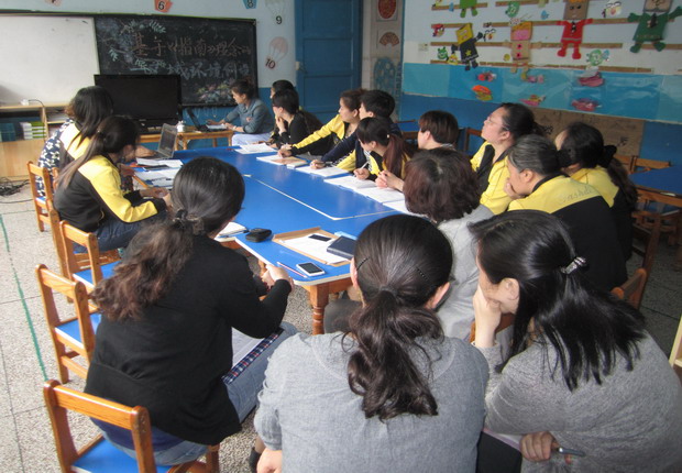 中午12:45,在主持人周莉的一个教育笑话中轻松地拉开了序幕。今天的教研主题是“基于《指南》理念的区域环境创设”,随着主持人的娓娓道来,老师们先针对前一次教研活动中遗漏下来的问题(对小一班某些区域活动内容或材料的重组和调整)进行了热烈的讨论。接着由大中小三个不同年龄