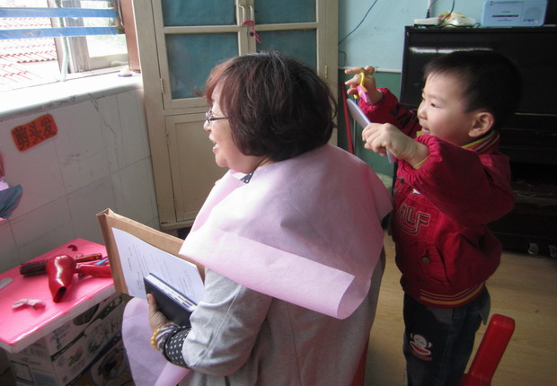 七点多钟,督导组成员陆陆续续来到朝阳幼儿园,他们亲切地走进课堂,聆听了老师们的精彩教学,有大班音乐活动《你的眼里有个我》、语言活动《青蛙卖泥塘》;中班的数学活动《做纸牌》;小班的语言活动《小青蛙听故事》等。他们和蔼地与孩子互动,参与了孩子们的趣味游戏,如她们扮演顾客来到理发店,请理发师设计发型,小小理发师像模像样地剪着头发,还有礼貌地说:“欢迎下次再来”……