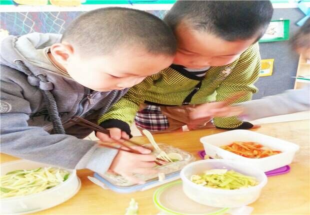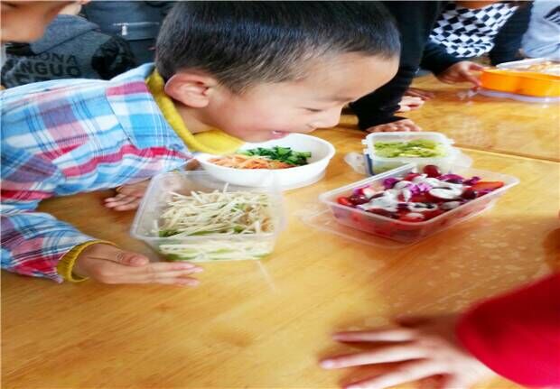 为了让孩子喜欢吃蔬菜,养成不挑食的好习惯,让他们了解蔬菜的不同口味和多种制作方式,茶山中心幼儿园果果一班开展了一次别开生面的“香香的蔬菜我最爱——蔬菜品尝会”活动。活动开展之前,班级里的每位家长都积极配合,为自己的孩子制作一盘蔬菜带到幼儿园来。活动中,孩子们仔细观察每一道菜肴,了解每一道菜肴离得蔬菜是什么:“我看到的是蔬菜沙拉,里面的蔬菜有生菜、番茄。”“我看到的是青椒土豆丝,里面的蔬菜是青椒和土豆。”“我看到的是黄瓜炒鸡蛋,里面的蔬菜是黄瓜。”……之后以自助餐的形式孩子们品尝了所有美味的菜肴。