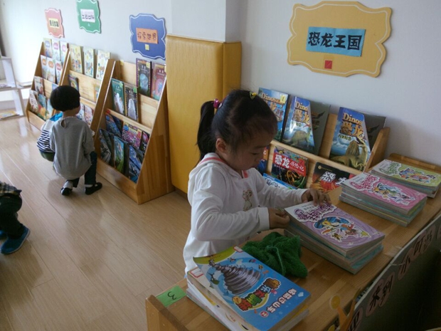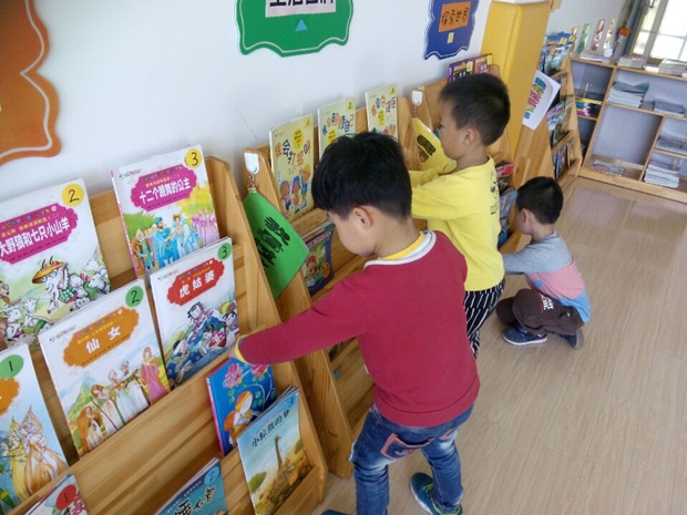 我园的图书室受到很多孩子的青睐,每天来到图书室借阅的人员爆满。时间一长,细心的孩子们发现很多书找不到家啦!原来有的小朋友在还书时,没有按照标记将书送回原位。于是他们每次都能及时来到图书室,争当图书管理员。瞧,孩子们一排排检查图书上的标记是否与书柜上的标记相符,及时将每本书归还到它原始的位置。