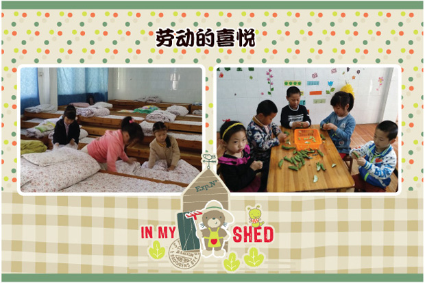 我园大班开展了“劳动最光荣”的主题教育活动,教师们在进行劳动的同时,引导幼儿也积极的参与进来,并将劳动教育渗透于幼儿一日生活中。这期间,大班的孩子们在老师的带领下,有的自告奋勇地帮助厨房的阿姨们剥蚕豆,有的富有爱心地的绿植花卉浇水,有的有条不紊地在寝室内叠被子整理自己的小床铺,还有的提起了布巾,认真仔细擦洗园内陪伴着玩耍的大型玩具……大家在忙碌的劳动中不亦乐乎,收获了与平时不一般的成就感。
