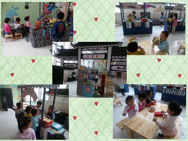 围绕主题,我们开展了丰富多彩的活动,例如主题性区域游戏《美丽常州——我的家》、建构游戏《中华恐龙园》、主题游戏《青果巷》《双桂坊》等,在游戏中孩子通过说、看、玩等不同的形式,充分感受家乡的发展与变化,培养孩子的语言表达能力和社会性交往能力;孩子还能在活动中了解常州的名胜古迹和特产,并且鼓励孩子用常州方言来朗诵儿歌,体验常州方言的文化和独特的美食。