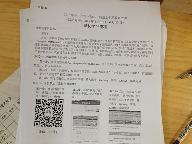 为加强"平安校园"建设,切实保障幼儿生命安全。2015年5月19日,茶山中心幼儿园开展“珍爱生命,预防溺水”家长安全教育工作。