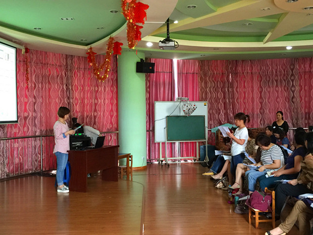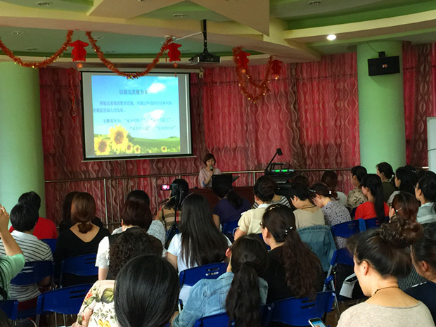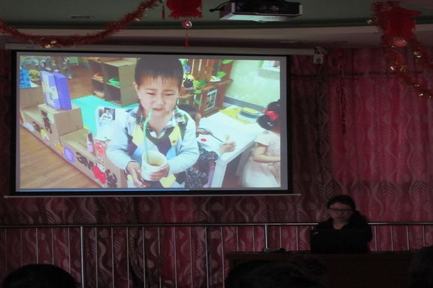 为了使评比活动能更好地引领教师对一级环境创设展开深入的思考,在活动中,评委就主题墙的创设和区域游戏材料投放等与参评作品的教师进行了有效交流,以提升教师对班级环境创设价值的认识。