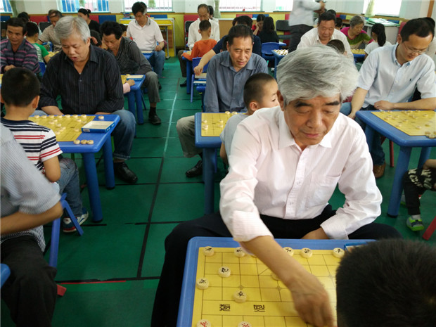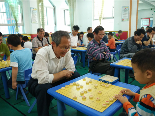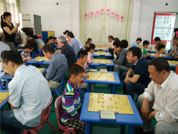 5月20日下午,在幼儿园的多媒体教室里,三十多位爱好棋类活动的家长齐聚一起,与爱好棋类的幼儿展开了一场激烈的棋类比赛,赛场上小棋手们有的全神贯注下棋,有的在轻声地和祖辈讨论棋艺的见解,“当头炮、马来跳、叠叠炮”等专业术语一一从孩子口中蹦出。小选手们虽然年纪很小,可是个个沉着稳重、步步为营,脸上始终洋溢着自信的微笑。