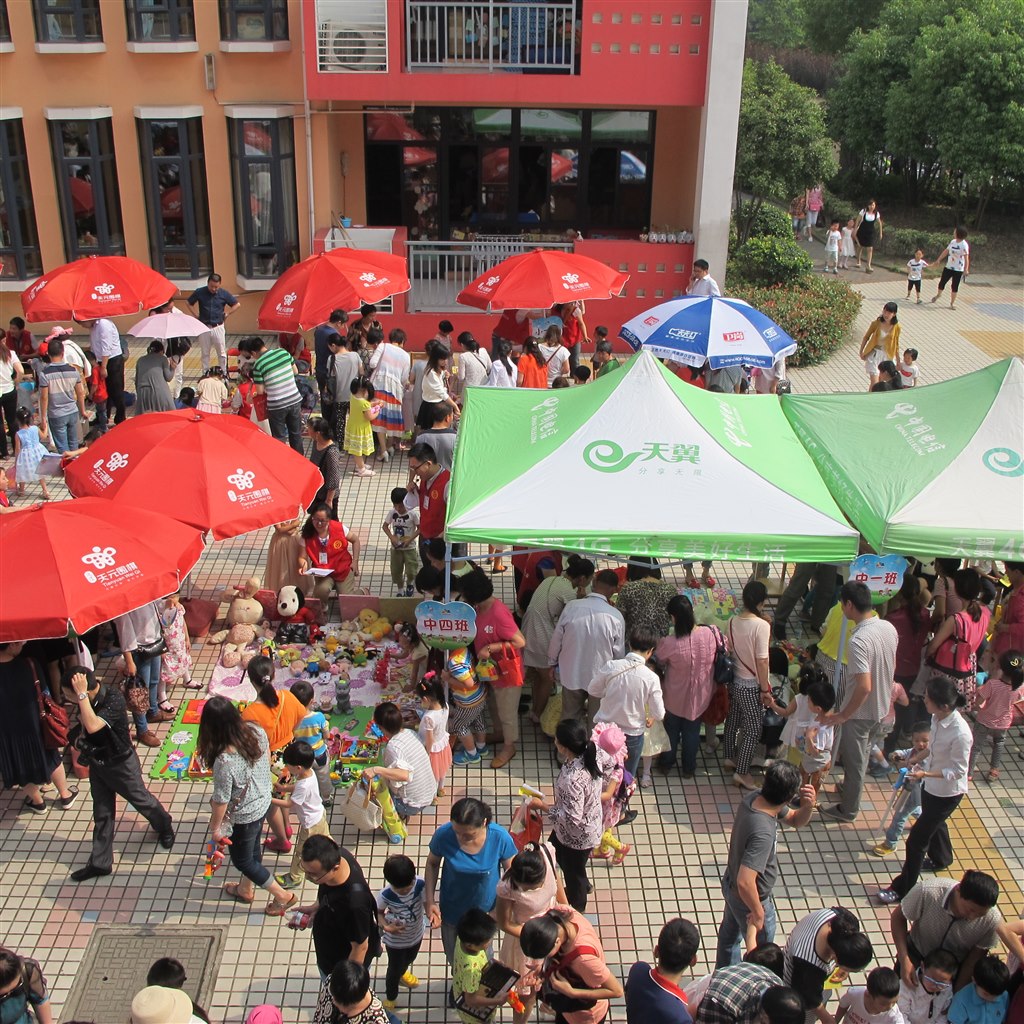 操场上人声鼎沸,热闹非凡,稚嫩的叫卖声不绝于耳。原来“跳蚤市场”开张了。 有图书、文具、衣服、饮食、手工制品、玩具……各种商品琳琅满目,各班的小朋友们有的正在积极的吆喝着“卖玩具了”、 “走过路过,不要错过”,有的正在牵着家长的手逛市场,挑选自己喜欢的玩具呢!幼儿园操场变成了“跳蚤市场”的开心乐园。