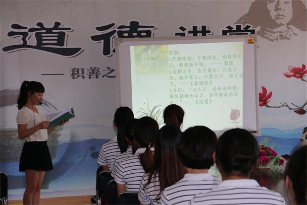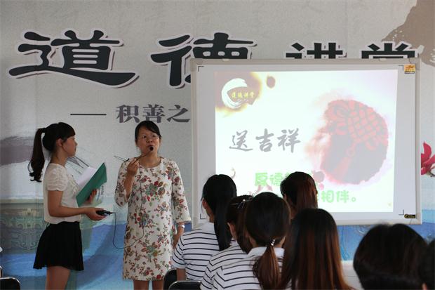 “道德讲堂”在同唱《公民道德歌》中拉开序幕。活动中,以分享“华电新疆公司”励志微电影,突出青年勇于拼搏,积极向上的可贵品质;以学习身边老师——邵丽娟老师的成长故事为典范,突出青年教师肯钻研,愿吃苦,想圆梦的良好心态;诵中华经典名句,突出青年重传承,懂感恩的优秀道德品质。