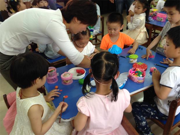 宽敞明亮的活动室里,正开展着丰富多彩的教学活动,小一班的社会《皮皮熊家的袜子》;中二班的美工《我来做糕点》;大二班的科学《会跳舞的小人》……随后的亲子活动更是精彩,娱乐游戏“撕名牌”;体育游戏“抢垫子”等,不仅促进了亲子间的情感,也让家长们看到了自己孩子在集体活动中的表现和进步,从而感受到了新世纪幼儿园教育的特色。