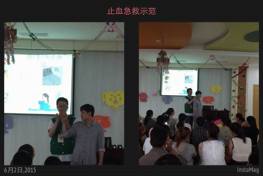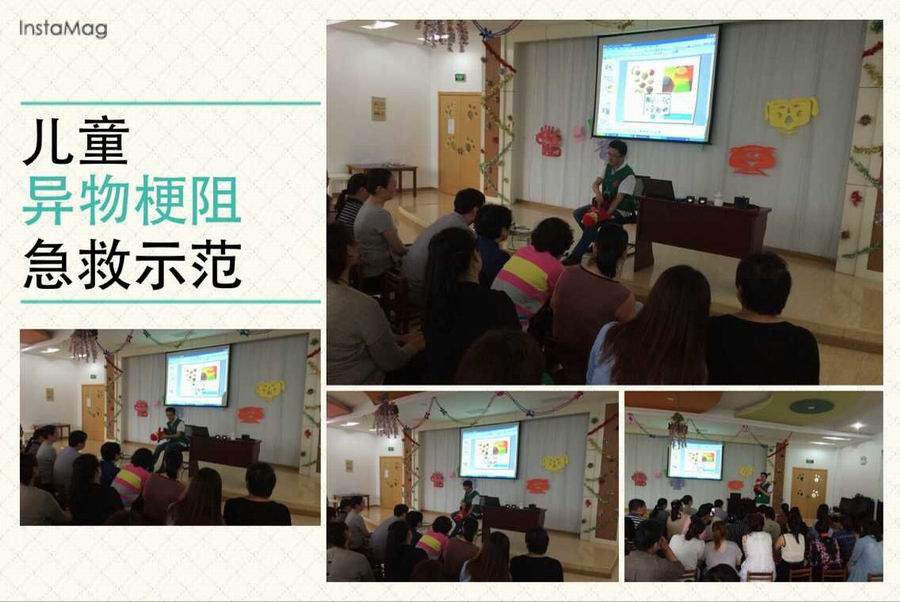 讲座中,许医生通过丰富的图片、视频资料和亲身示范,生动形象的向老师和家长们演示了气道梗阻窒息急救、创伤止血急救等技术和急救知识,并向大家普及了一些对灾害的自救互救知识,有效地提高了家长和教师在应急情况下对儿童进行救护的能力。