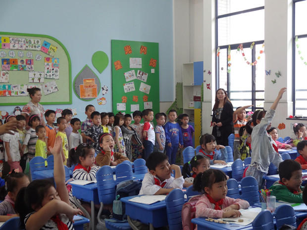 孩子们怀着好奇和疑问,兴致勃勃地走进了盼望已久的小学校园。在小学老师的带领下,大家先后参观了宽敞明亮的教学楼、先进的多功能电脑室、安静的借阅室、音乐室、科技室等,还观摩了一堂一年级语文课。当孩子们看到小哥哥小姐姐上课时端正的坐姿、认真的学习态度,都纷纷学模学样起来;当听到小学生积极洪亮的回答问题,眼神中透露出一种佩服与向往。