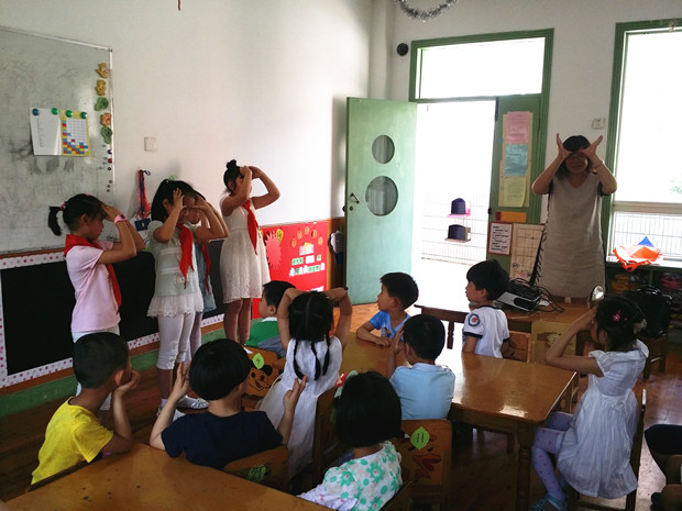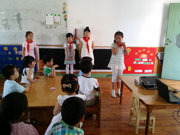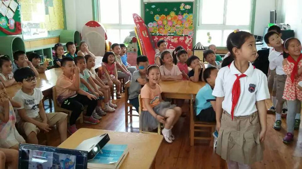 在活动中,小学带队老师和学生们一起,首先,利用图文并茂的方式,讲述小学里开展的各种各样如:义卖活动、糖果节活动、入队仪式、升旗仪式等有趣的活动。其次,小学生与大班幼儿还采用互动提问的方式,由学生提问,幼儿回答,然后学生再总结的方式,讲述了遇事报警该说什么、和陌生人怎么交流、地震了如何自救等常识,帮助孩子们更多的了解了生活中发生意外时的安全知识。最后,带队老师还留给大班幼儿对小学生进行提问的环节,这让对小学生活充满好奇心的大班孩子异常兴奋,提出很多有趣的问题,有的问怎样系红领巾;有的想学眼保健操、还有的问了小学里有什么课……可爱的孩子们在和小学生们欢快的互动和模仿游戏中结束了活动。