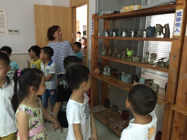 小朋友们怀着好奇和期盼的心情参观了龙锦小学的升旗仪式,随后在一位哥哥姐姐的带领下参观了他们的室内体育室、陶艺室、操场、教学楼等活动场所,走进体育室坐在看台上仿佛置身在了比赛中,个个都惊叹不已;来到陶艺室小朋友们立刻被眼前的一件件陶艺作品所吸引;走过教室,在宽敞明亮的教室,孩子们听到哥哥姐姐们琅琅读书声的时候,个个都聚精会神地倾听着、关注着;来到操场,孩子们迫不及待地玩了玩那些和幼儿园里没见过的体育器械,孩子们对小学的一切都充满了好奇,对上小学和做小学生的愿望也更加强烈了。