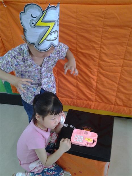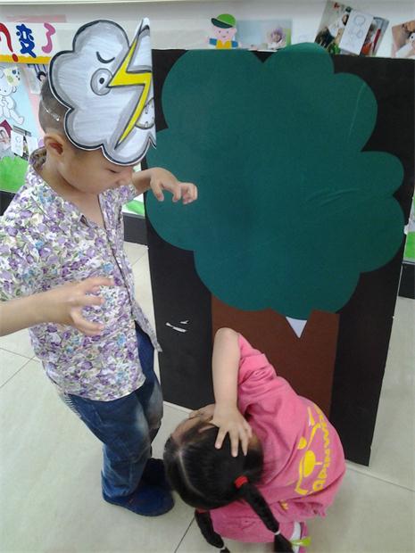 班级里教师进行的安全防护现场学的活动,孩子们很积极地进行模仿,如雷电来的时候要怎样避雷,不要躲在树下,要呆在家里等。通过各班组织的安全教育,进一步把雷电知识形象化,直观化,具体化,孩子们有了更好的了解。