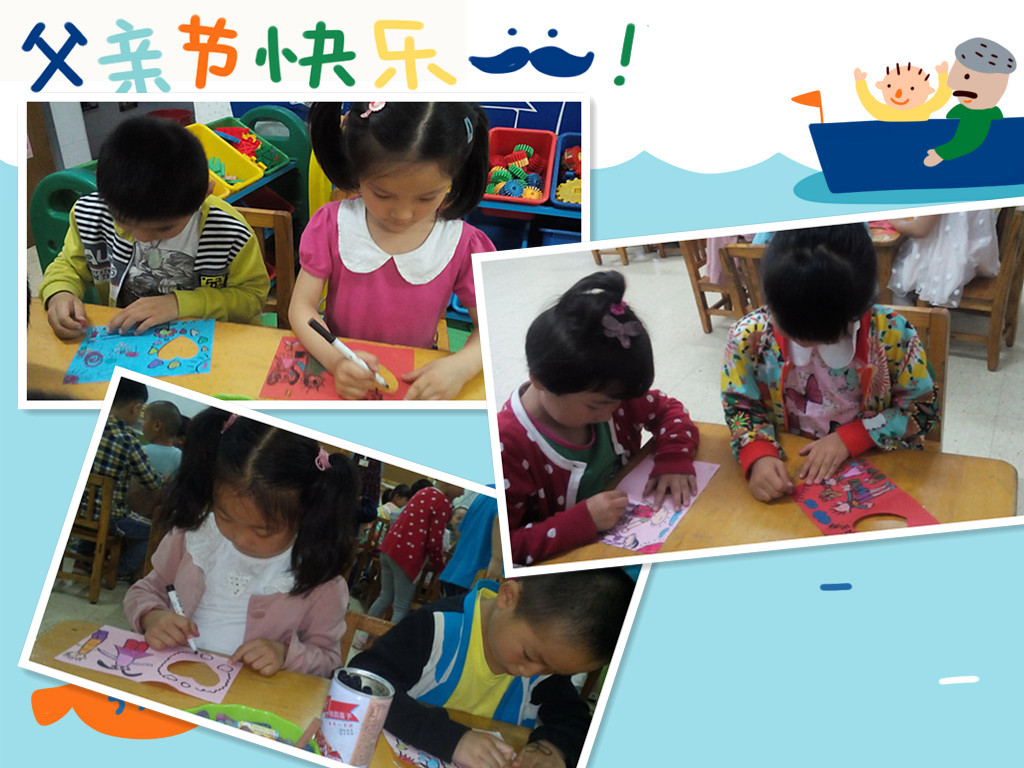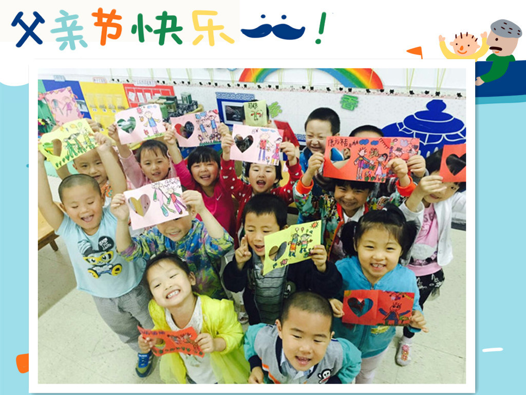 父爱童心,其乐融融,据妈妈们反馈:爸爸在收到了孩子的卡片后非常感动,他们立即与孩子玩了起来,爸爸们感悟到:今后在繁忙的工作之余一定要留点时间陪伴孩子,远离手机、电视、电脑,让他(她)们在成长的过程中留下更多美好的回忆。