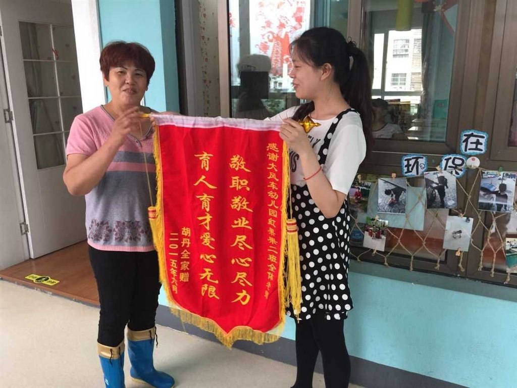 大风车幼:锦旗载情送老师——敬职敬业有爱心