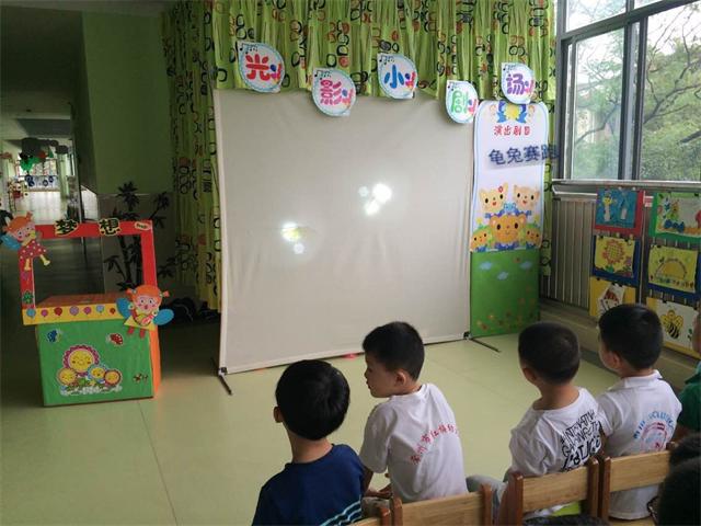 此外,我们还特别准备了皮影戏操作材料“乌龟”和“兔子”,孩子们两两合作手持操作杆让“乌龟”慢慢地爬起来、“兔子”快速跑起来,表演的皮影剧《龟兔赛跑》惟妙惟肖。