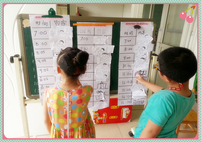 为了更好地安排好自己的时间,为进入小学做好充足的准备,小朋友们通过合作共同制定了“暑期一日生活计划”,在制定过程中,孩子们积极讨论,合理分配时间,共同合作完成了计划表的制定。