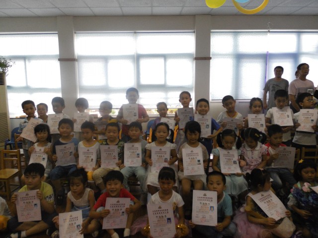 面对人生第一次“毕业”,孩子和老师都有说不出的滋味。看,平时上课不乖的孩子如今也坐得好好的在专心地听讲,喝水时也能有序地排队,男孩子还能很绅士地让女孩子主动接水。一下课孩子们围在一起诉说心中的感慨、难舍难分。还互相把联系号码都记在自己的本子上。下课后还不时地围着老师在老师身边窃窃私语,有好多的话儿跟老师倾诉。放学后领着自己的爸爸或妈妈去看自己的学具柜,里面藏着他们每天的贴花。