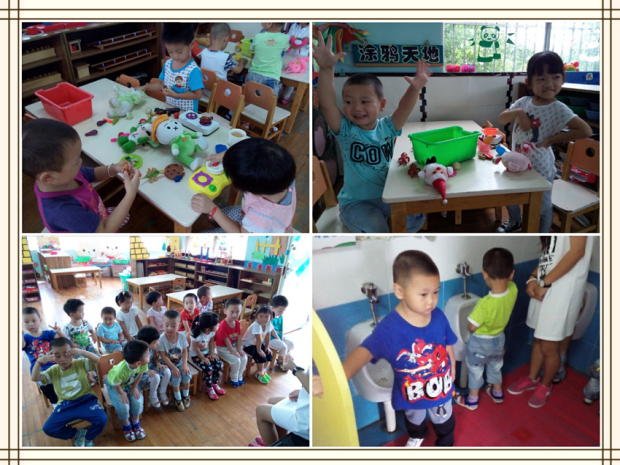 暑期适应班虽然每天只有短短半天的时间,但孩子们、家长们都表现棒棒的呢!家长们再也不逗留在教室门口不走了,学会了放手。在老师们耐心的安抚下,孩子们的哭声慢慢的也变少了,孩子们能独立玩起玩具,独立如厕、洗手等。这一切的变化都是因为在暑期班开班前,我们的园领导、老师们都做了精心的筹划、安排与准备。有序的安排使家长们能放心送孩子进园,园方也能从容面对新生入园可能产生的一系列问题,让新生入园变得有条不紊,有效地开展。