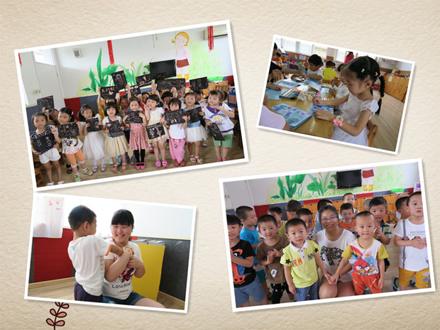 活动当天,幼儿园大中小班的孩子们以各种不同的形式来祝福她们的“最爱”——好老师。小班的孩子们抱一抱、亲一亲自己的好老师,给老师唱首歌,跳个舞,用灿烂的微笑和动听的歌声表达自己的心意。中大班的孩子有的用彩泥制作鲜花,花瓶,送给好老师;有的为老师穿项链、做花裙子来打扮美丽的老师;有的幼儿用彩笔绘制独一无二的贺卡,上面歪歪斜斜地写着“教师节快乐”……感恩祝福之情在孩子们的行动中体现,在欢声笑语中蔓延。