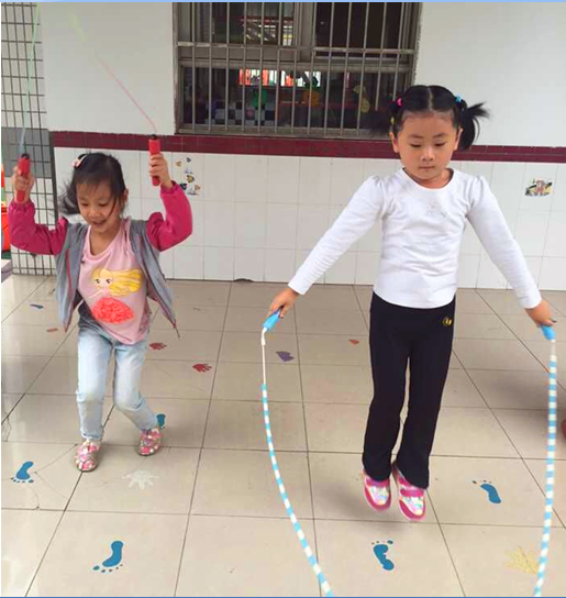 为了促进幼儿体能的发展,增强幼儿体质,幼儿进入大班,红梅中心幼儿园大一班的老师就为他们开设了跳绳活动。跳绳要求孩子们具备一定的身体协调能力,要求手、脚、跳绳的频率能够协调配合,一开始,很多孩子都难以达到这样的要求,跳的很别扭,同时,很多孩子觉得跳绳很累、害怕被绳子绊倒,等等,造成他们不爱练习跳绳。仅仅从第一次组织幼儿练习跳绳,我们就发现班级37位小朋友中只有3位幼儿能连续正确跳绳。根据幼儿跳绳活动的现状,老师们进行了分析和研究,从激发幼儿对跳绳活动的兴趣出发,积极吸引幼儿主动学习、快乐学习跳绳活动,引导幼儿掌握跳绳的正确方法和技巧,使全班大部分幼儿学会了跳绳、喜欢上了跳绳,促进了幼儿的身心发展,取得了不错的效果。让我们一起去看看吧!
