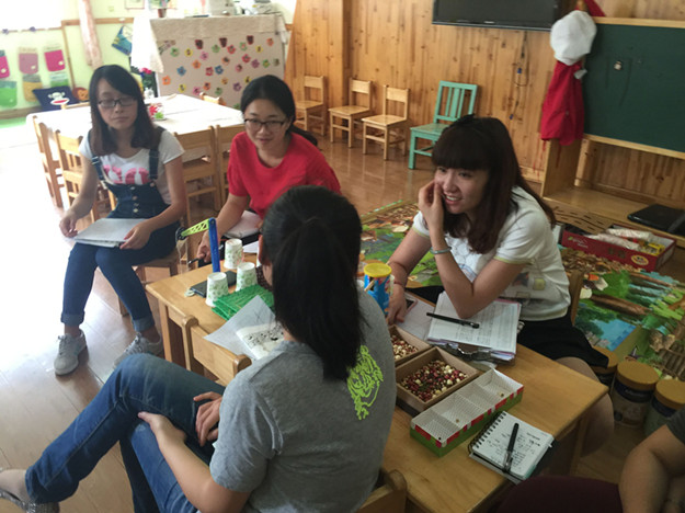 9月22日中午,艺术幼全体教师进行了科探游戏的观摩研讨,这是幼儿园科学活动园本教研的系列活动之一。活动由两部分组成:首先由大班年级组老师进行科探游戏区的材料进行展示。接着,教研组根据材料的设计、组织和成效,围绕“让幼儿在科探游戏中快乐学习的有效方法”为议题进行研讨。