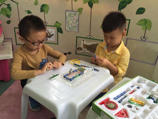 为了增强孩子的科学探索能力,提高孩子的科学探究意识,翠竹幼儿园中一班的孩子开始了一场像拼积木一样的拼装电路的组合探秘。
