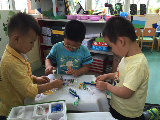 平时活泼好动的男孩子在玩科学区的此类游戏时,一下子安静了下来,变成了安静探索的小工程师。在培养科学探索能力的同时,还让中一班的男孩子学会安静耐心地做好一件事,无形中让孩子们养成了良好的学习习惯。