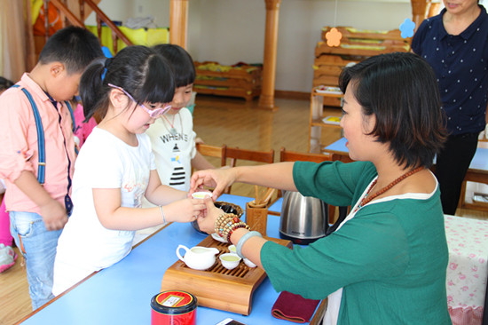 为了让幼儿潜移默化地感受中华民族悠久、独具魅力的文化,让高雅的茶文化走进幼儿园,并作为课程来熏陶教育孩子,让幼儿乐在其中,悟在其中,逐步形成良好的个性心理和积极的情感态度,从小培养他们对中国文化的认同感。我们邀请了懂得茶艺的家长来园为孩子们展示沏茶、品茶、敬茶等茶艺礼仪。